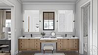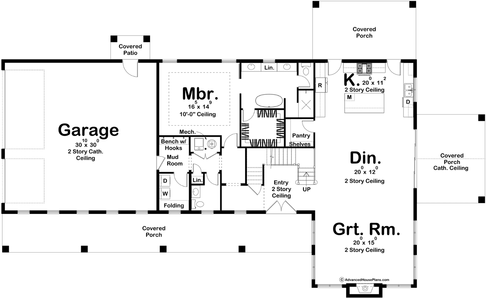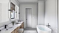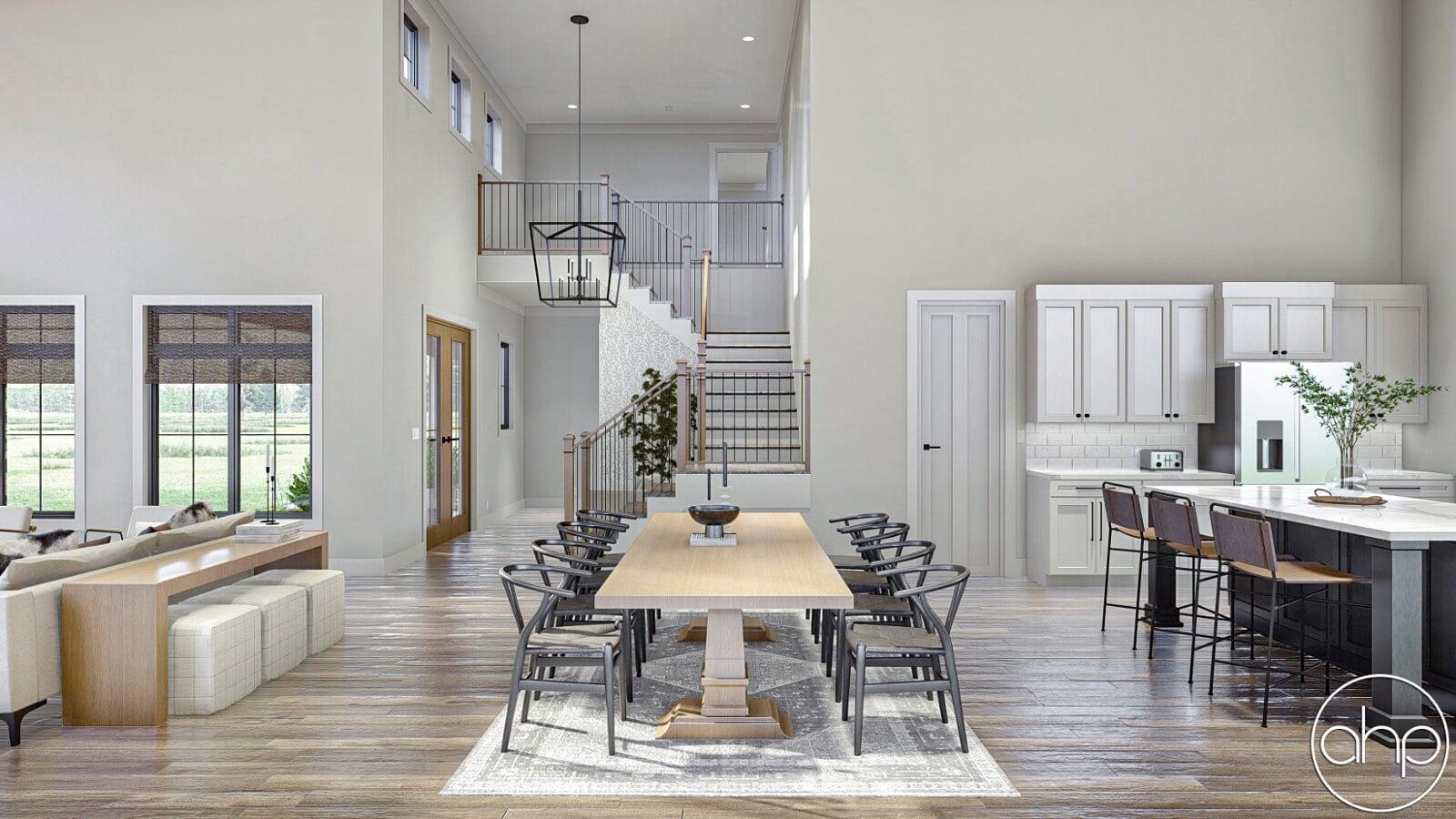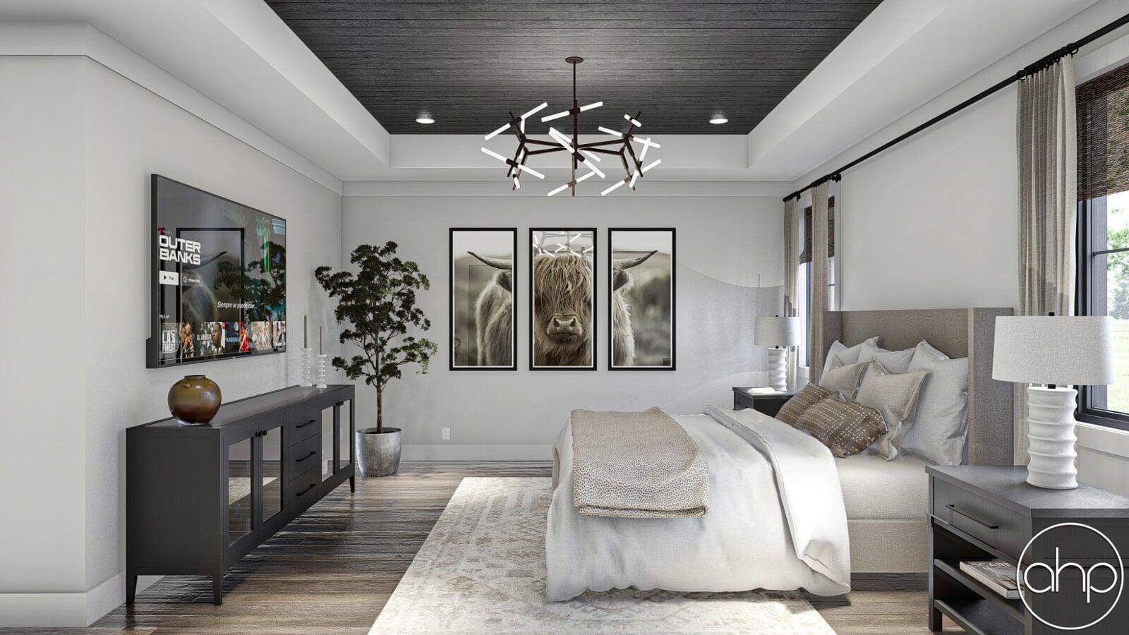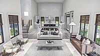 Leading throughout the rest of the home is where you can find the master bedroom, with 10’ ceilings, a double vanity bathroom, and a spacious walk-in closet. Back out in the hallway leads to the powder bath, laundry room, mudroom, as well as the three-car garage with a two-story cathedral ceiling.