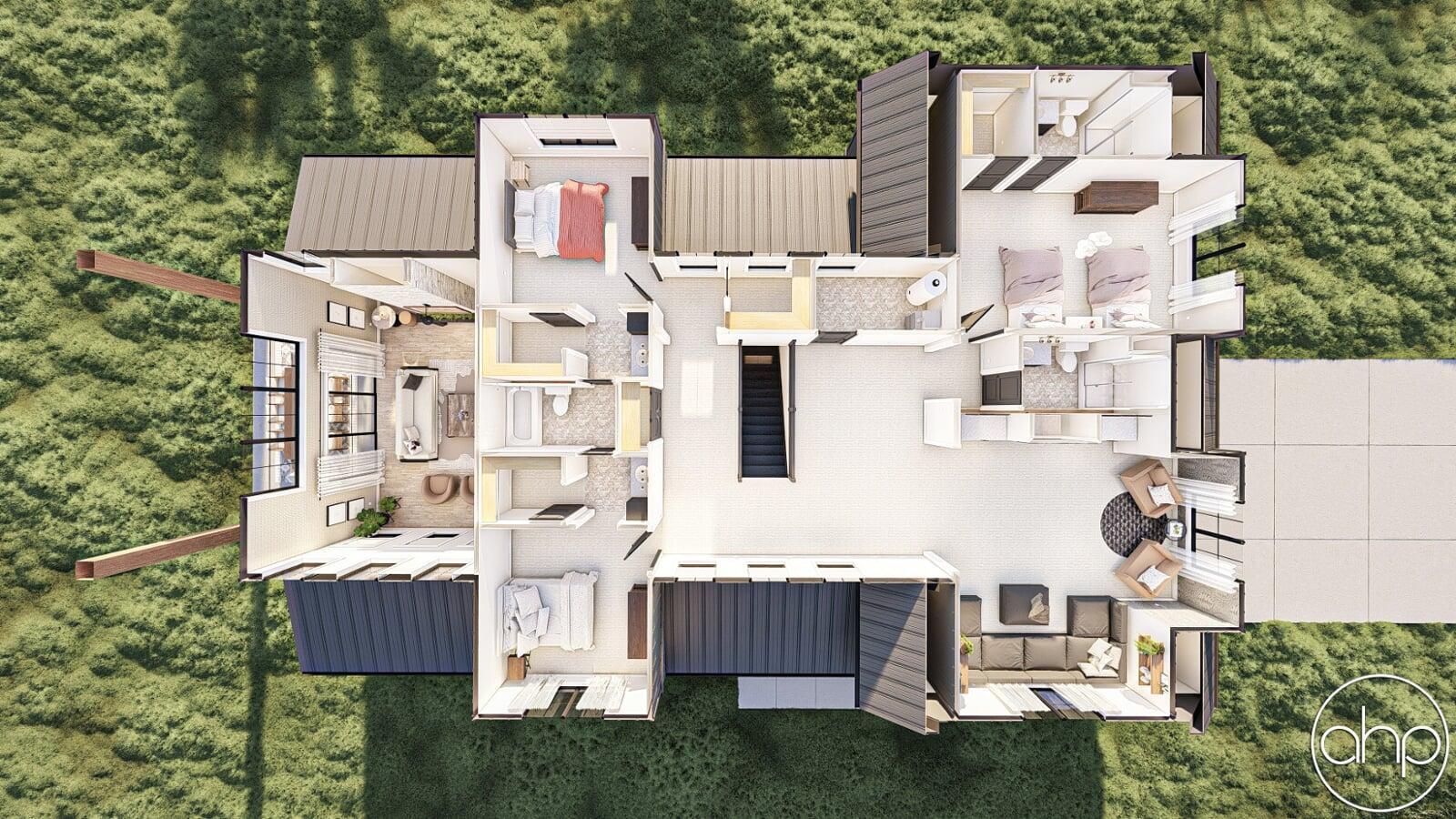 There are several areas on the outside of the home for covered porches, perfect for enjoying a cup of coffee or glass of wine at the end of the day.