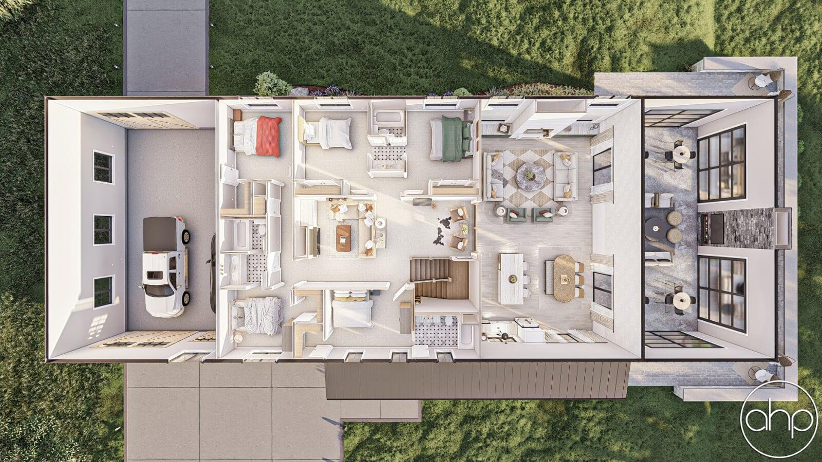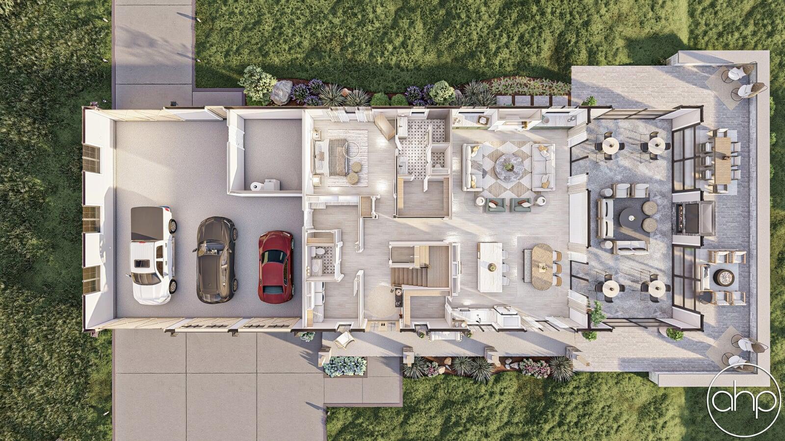 The four-car garage provides ample room not only for your vehicles but also for storage, a workshop, or any hobby you're passionate about. It's the ideal space for tinkering with your tools, working on DIY projects, or simply parking your vehicles securely.