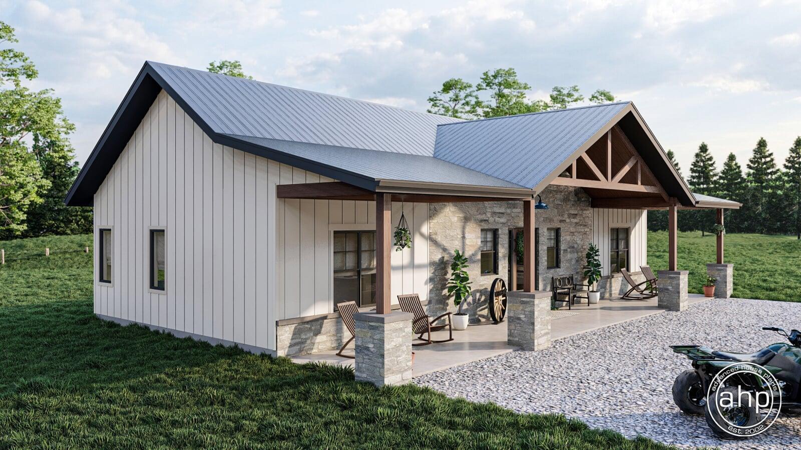 If you've been thinking about building a Barndominium, you might have just found your perfect plan. The Hidden Acres is a stunning 3 bedroom, 1 story Barndominium style house plan.