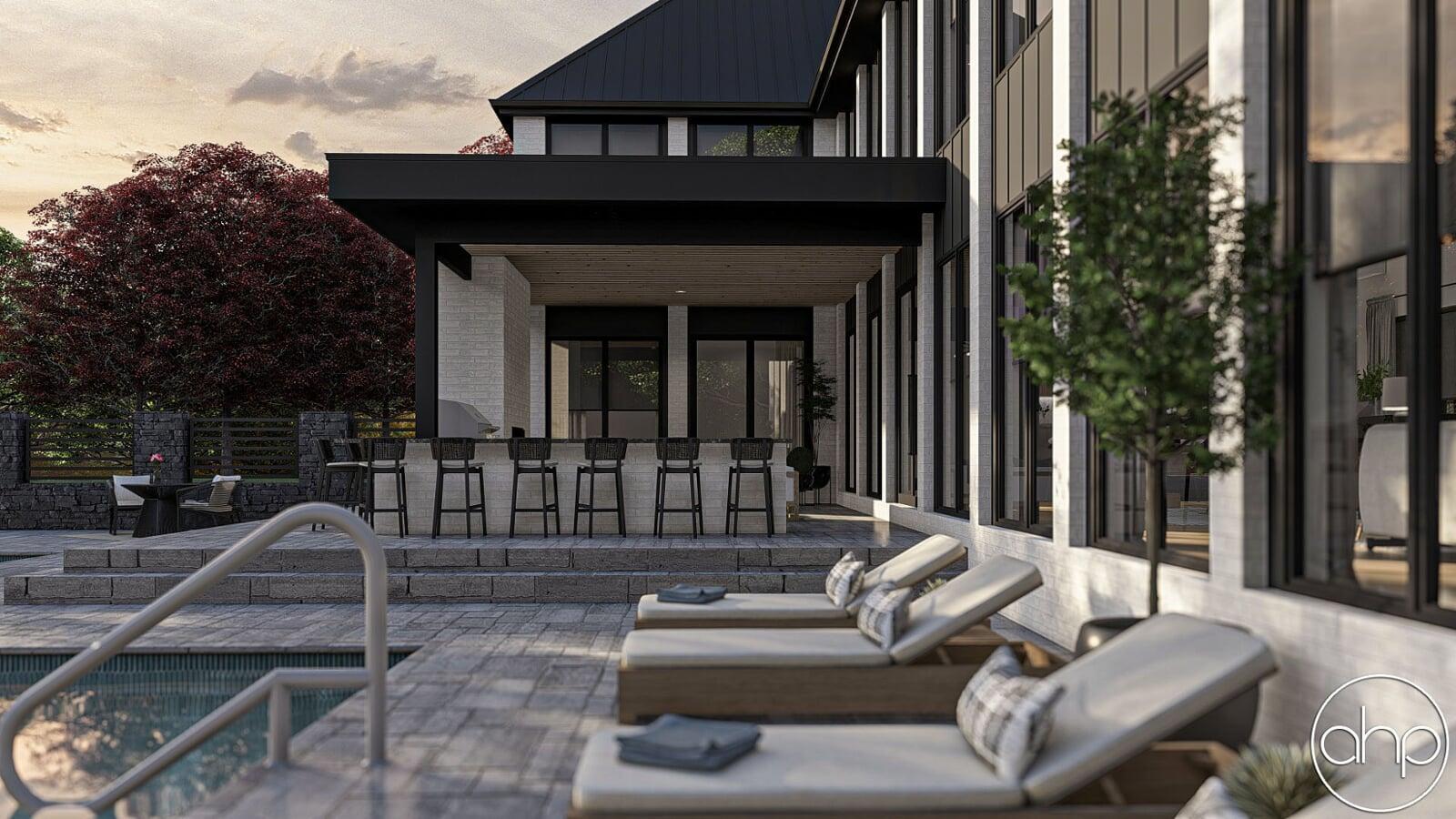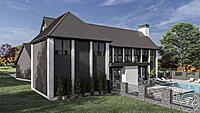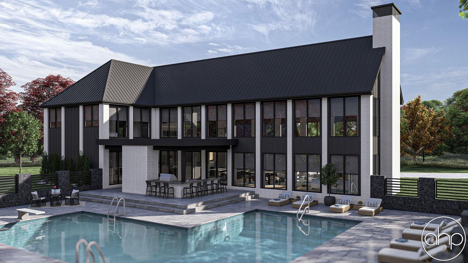 In essence, this modern barndominium-style house plan seamlessly combines contemporary luxury with rustic charm, offering a retreat where indoor comfort meets outdoor serenity. Whether enjoying the expansive windows, gathering in the outdoor living spaces, or relaxing in the well-appointed interiors, this home is designed to elevate your lifestyle and create lasting memories.
