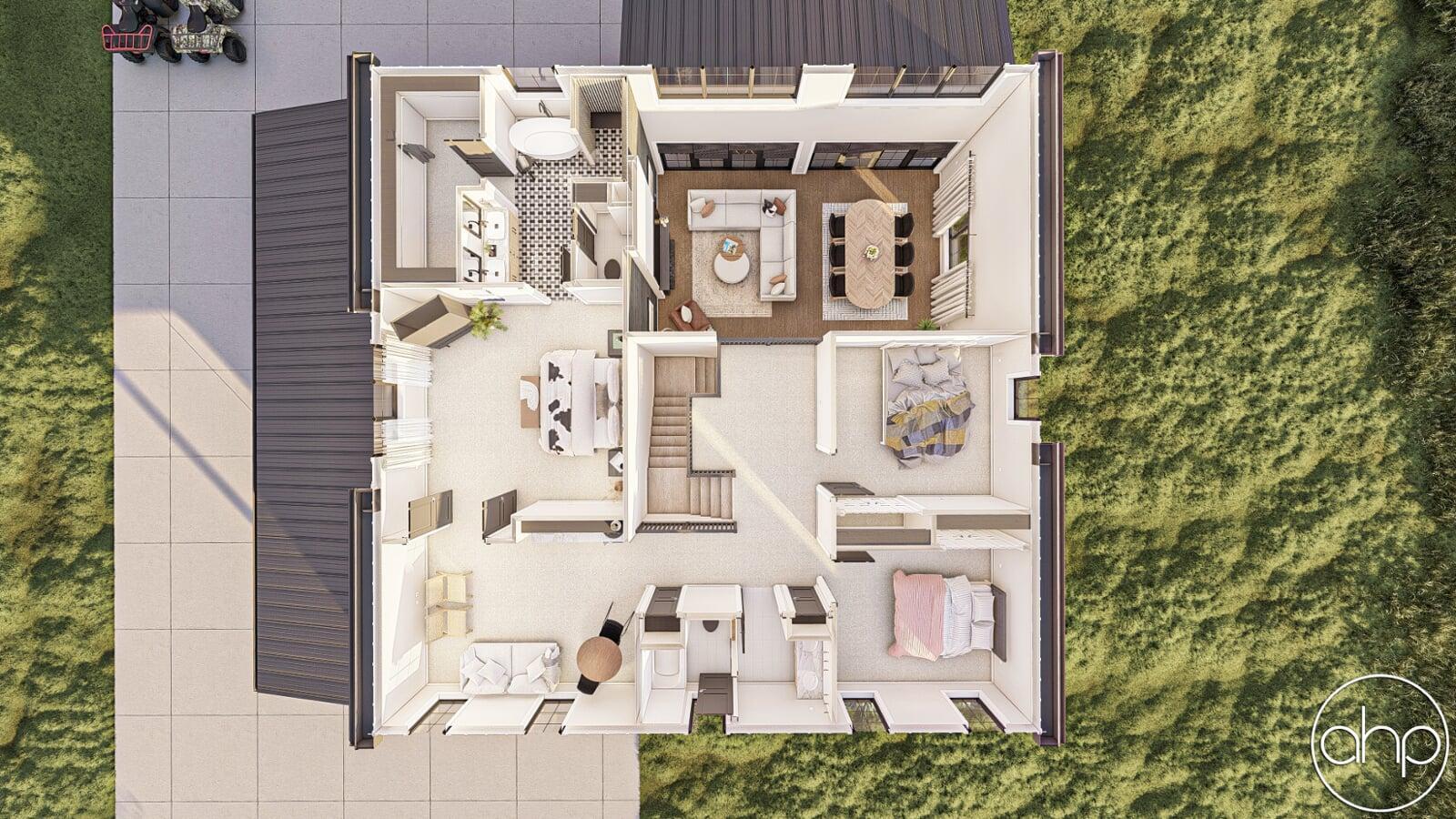 The Barndominium House Plan is an architectural marvel that seamlessly combines the rustic charm of a barn with the contemporary comforts of a modern home. From the striking barn-shaped roof to the inviting lean-to covered patio, every detail has been meticulously designed to create a harmonious and welcoming living environment. Whether you're hosting a gathering in the open great room, enjoying a quiet moment in the master suite, or simply appreciating the unique aesthetics, this Barndominium is a true testament to the perfect fusion of functionality and style.