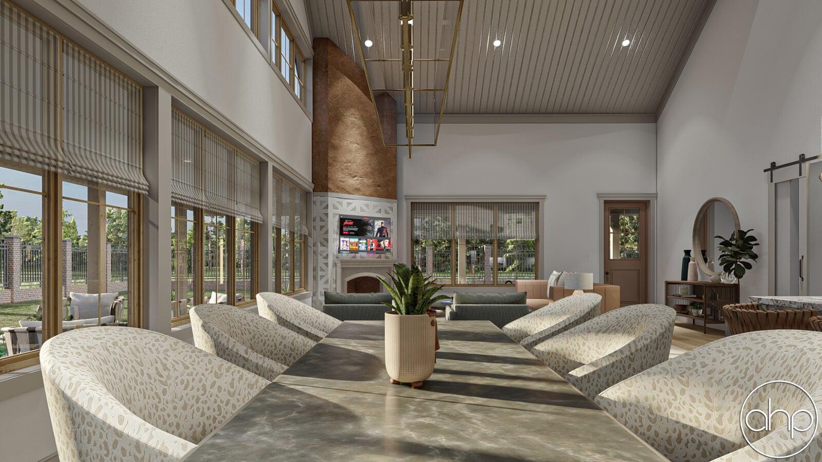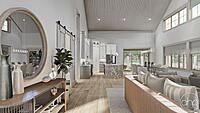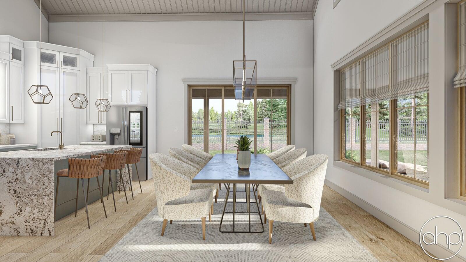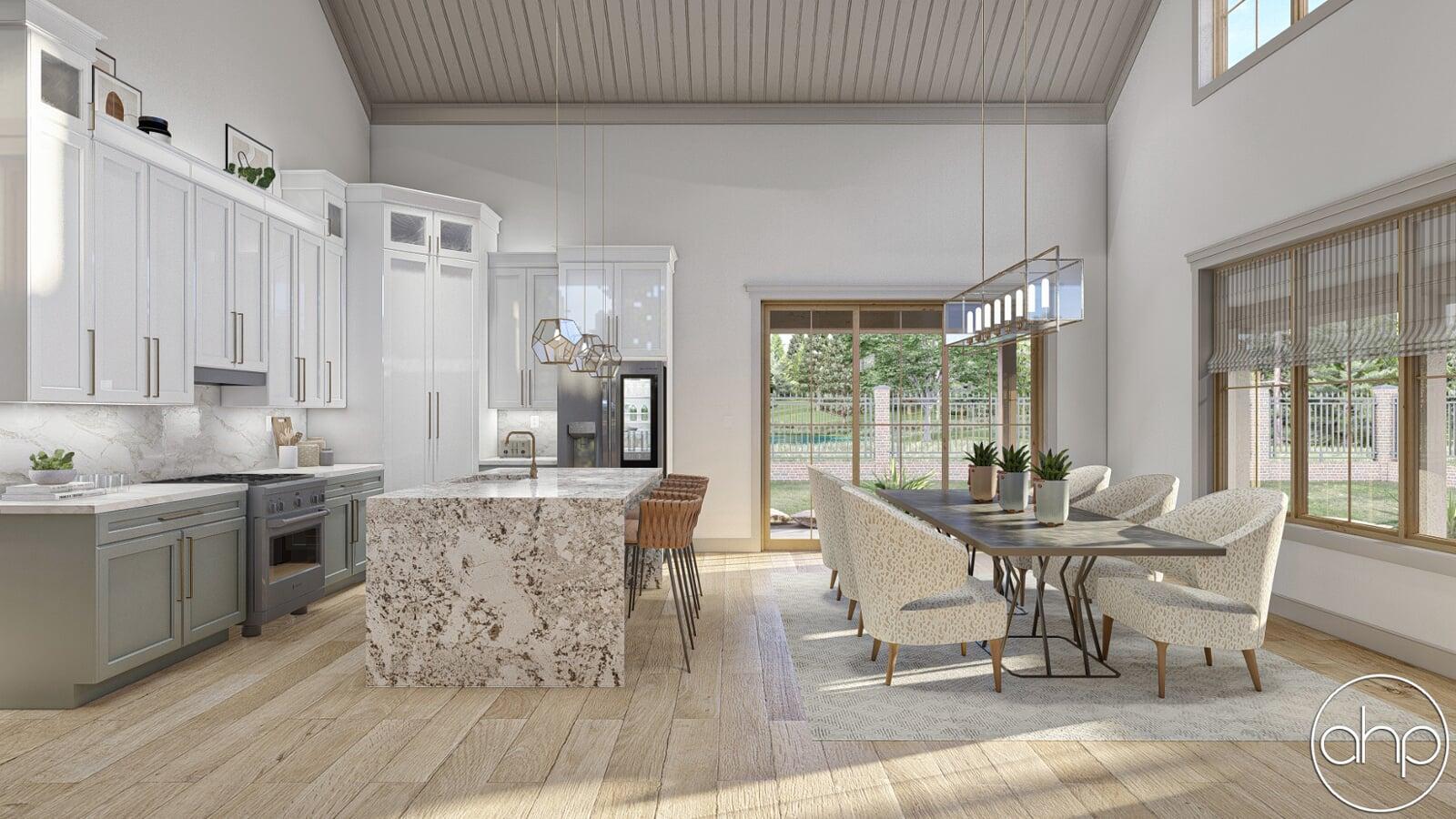 The Red Rocks plan is a stunning Barndominium style 1 story house plan. The simple shape of the exterior makes the plan very efficient to build. A wrap around porch creates a ton of outside entertainment space.