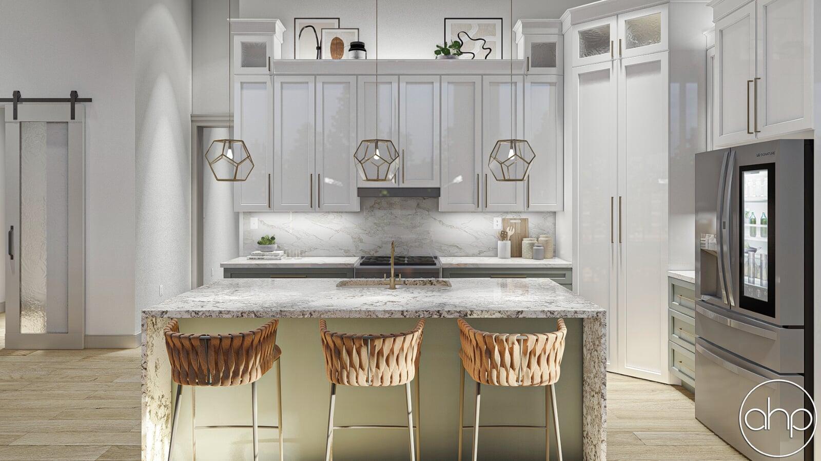 The master bedroom is found on the right side of the home. The master bathroom includes his/her vanities, a linen closet, and an enclosed toilet area. Bedrooms 2 and 3 share a conveniently located hall bathroom with the main living space.