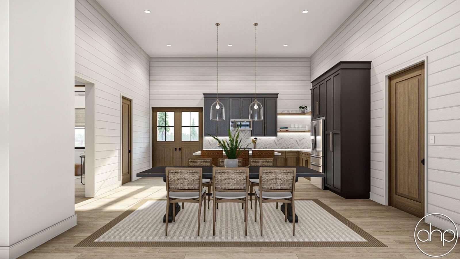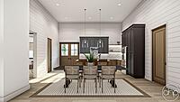 Dining Space: The dining area seamlessly flows from the kitchen, providing a lovely space for family dinners and social gatherings. High ceilings create an inviting and spacious atmosphere.