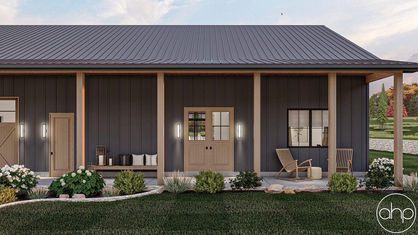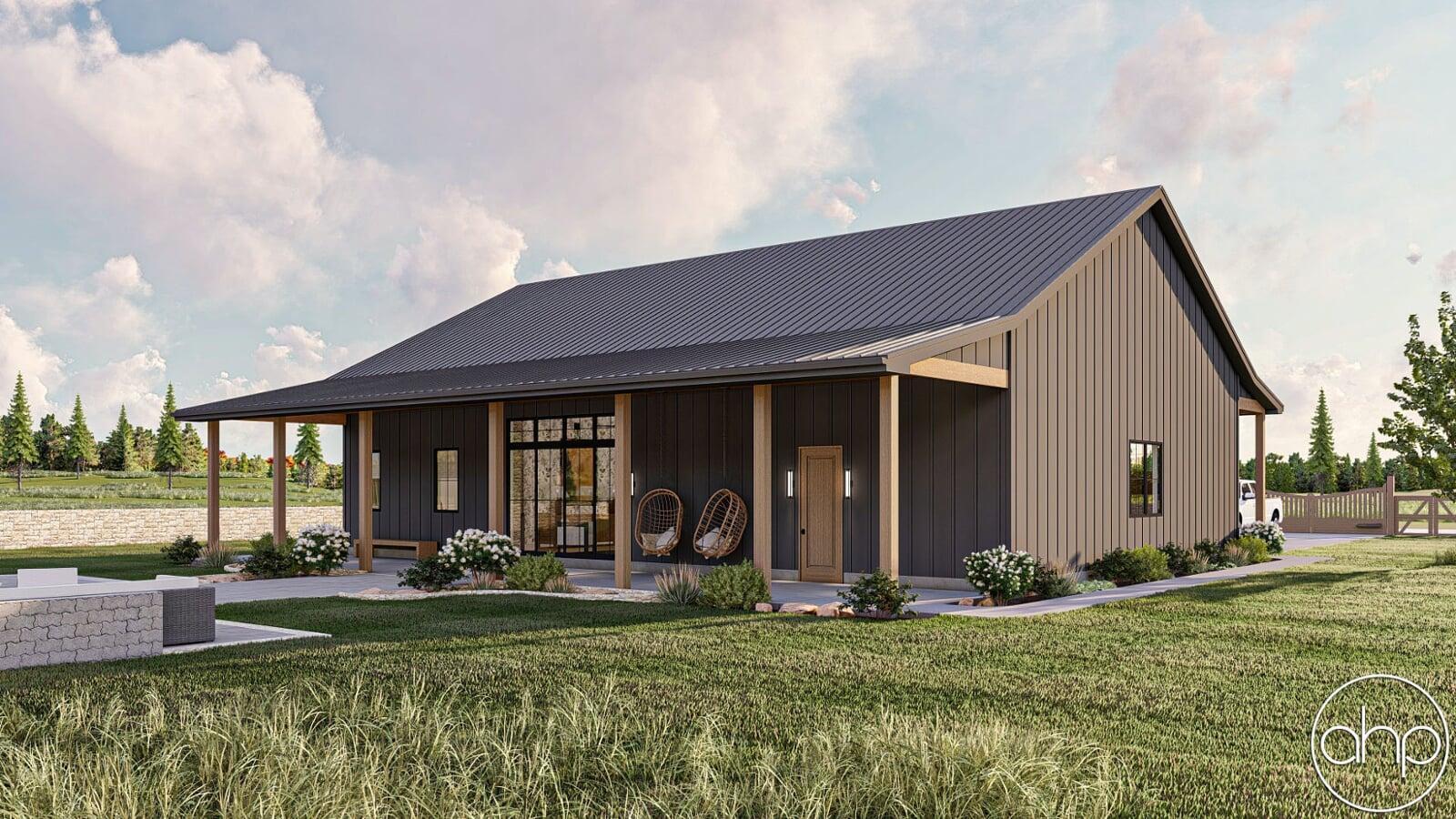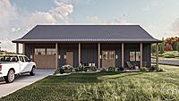 With its compact yet functional design, this small barndominium house plan maximizes every square foot, making it the perfect choice for those who appreciate the beauty of simplicity and efficient living. The covered porches, inviting kitchen, and open living spaces create a warm and welcoming atmosphere that's sure to make you feel right at home. Whether you're starting a new chapter or seeking a cozy retreat, this house plan is a testament to the perfect blend of style, functionality, and comfort.