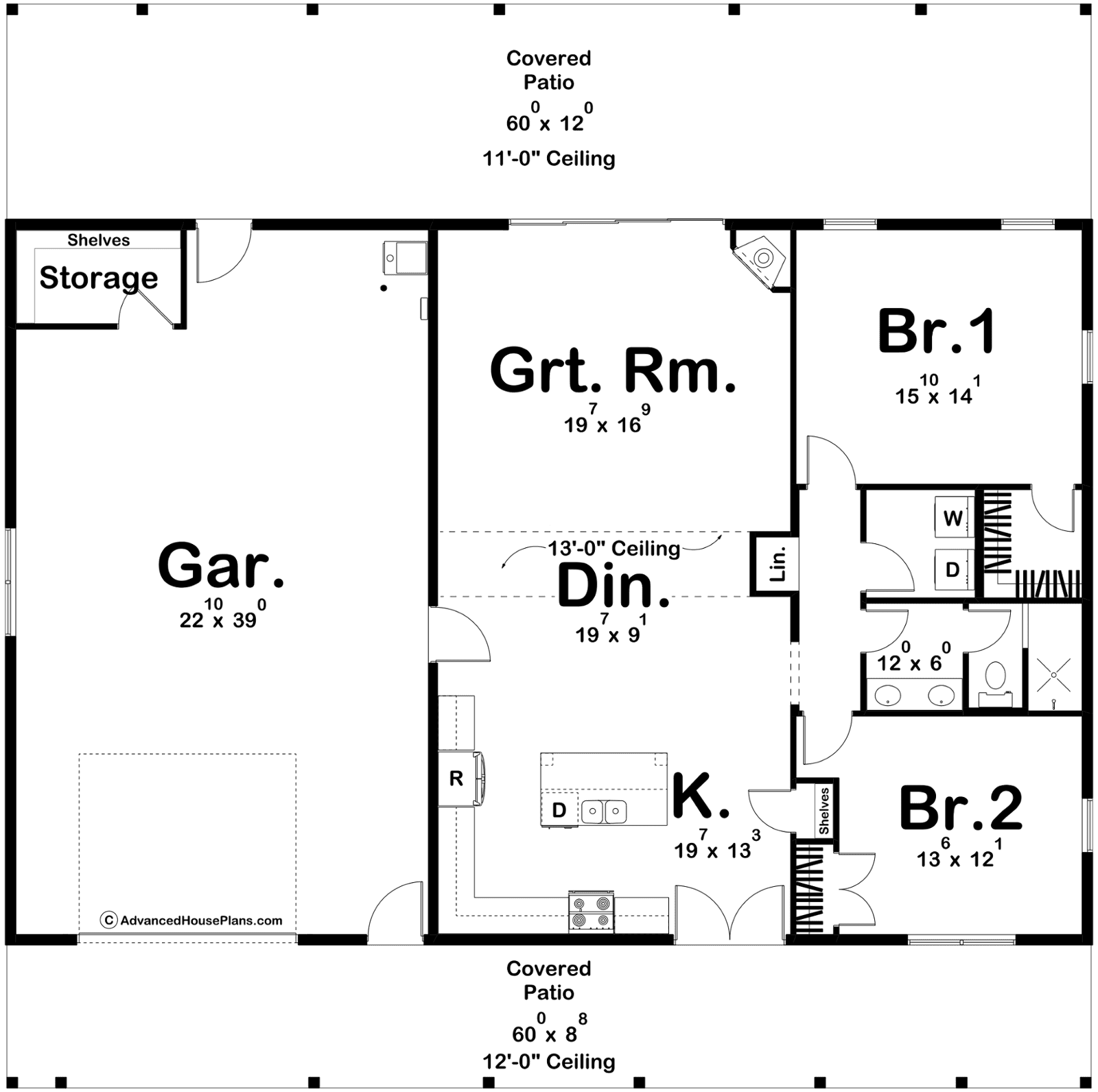Bedrooms: This house plan offers two bedrooms, designed with comfort and relaxation in mind. The bedrooms share a well-appointed hall bathroom, providing convenience for both residents and guests. In this efficient layout, you'll find a convenient hall laundry area, ensuring that your household chores are completed with ease and efficiency.
