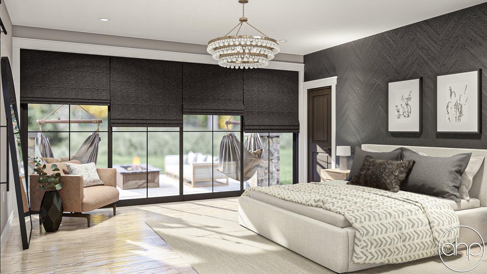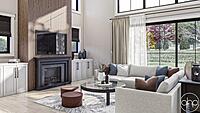 Connected to the dining area is the grand 2-story ceiling great room, which becomes the focal point of gatherings and family moments. Here, a captivating fireplace serves as a centerpiece, providing warmth and comfort during colder days while adding a touch of coziness to the living space. A large sliding door opens to the bring the outdoors inside.
