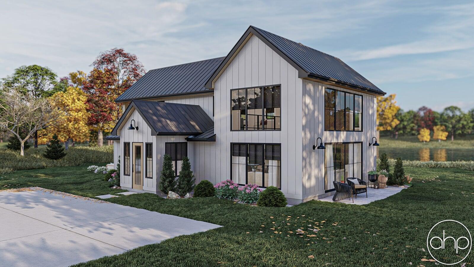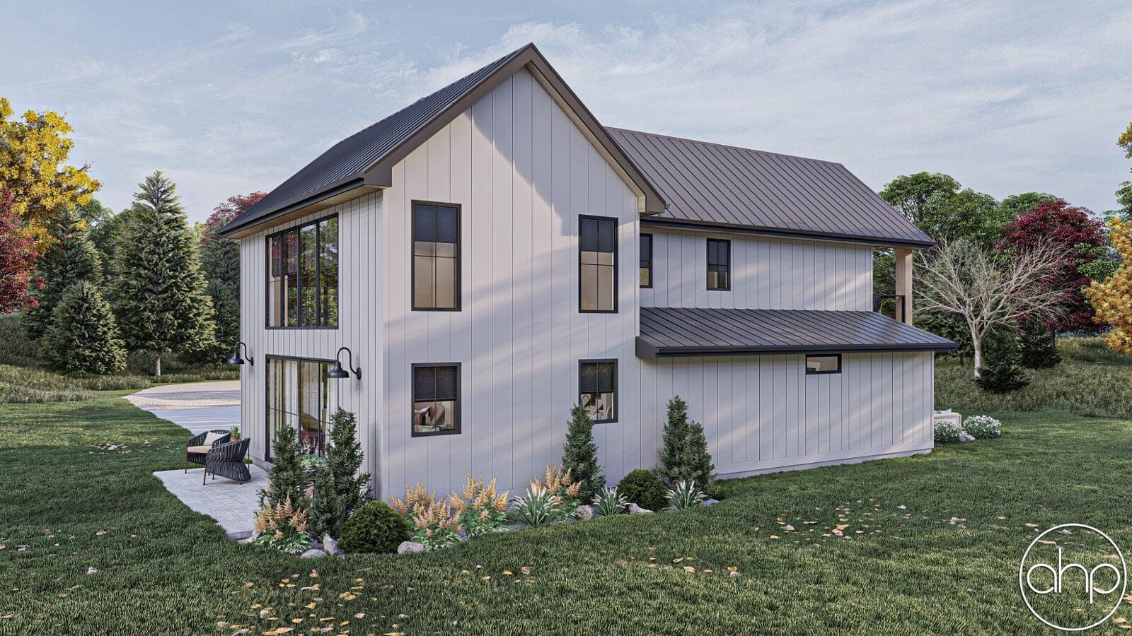 Welcome to the charming and inviting Barndominium Modern Farmhouse! This distinctive house plan combines the rustic elegance of a farmhouse with modern elements, presenting a perfect blend of comfort and style. As you approach the house, you'll be drawn in by the eye-catching standing seam metal roof and the timeless appeal of board and batten siding, creating an architectural statement that seamlessly blends with the natural surroundings.