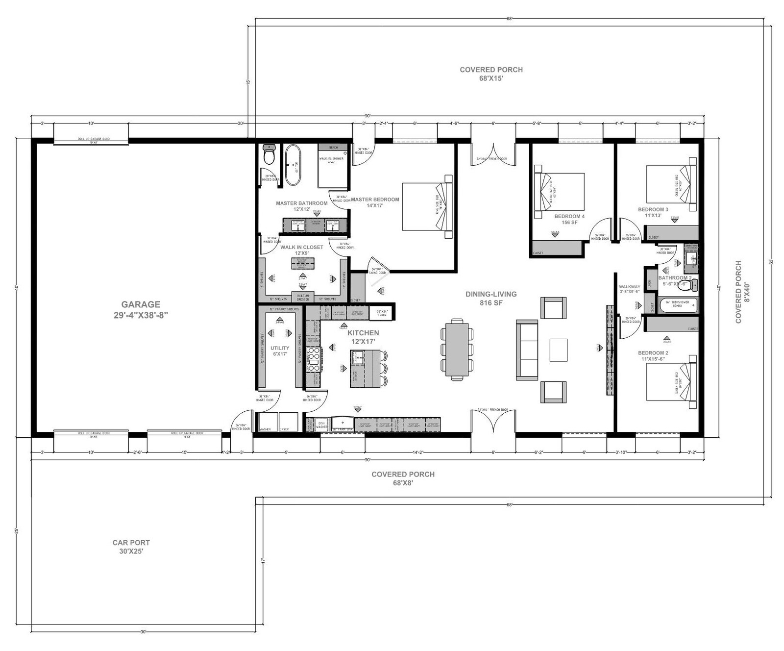 Explore the captivating allure of “The Ranger” Barndominium, a remarkable fusion of rugged elegance and contemporary living. Crafted by Texas Rural Construction, this thoughtfully designed space encapsulates the spirit of Texan living, offering a harmonious balance between functionality and style. With a spacious layout that seamlessly merges living and leisure areas, “The Ranger” beckons those who seek a distinctive and comfortable lifestyle in the heart of Texas.