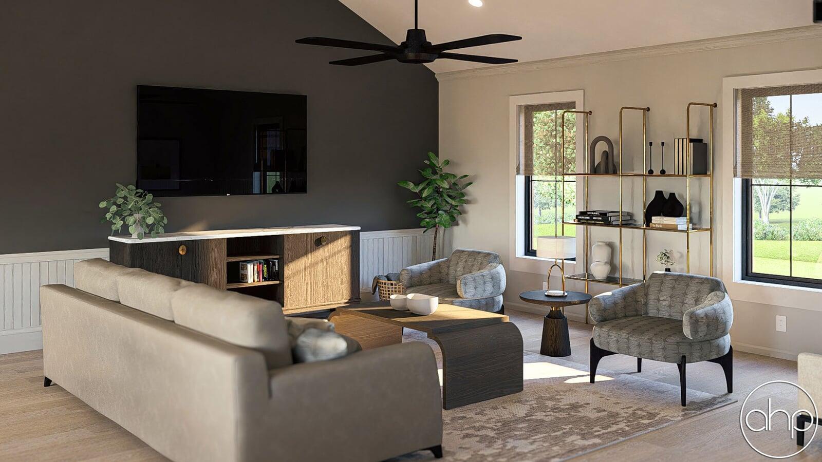 Step into the charm of a barndominium-style carriage house, where rustic allure meets modern comfort. As you approach, the timeless appeal of the structure draws you in, evoking a sense of nostalgia and warmth. Inside, you're greeted by a spacious living area accentuated by a cathedral ceiling, creating an open and airy ambiance that invites relaxation and conversation.