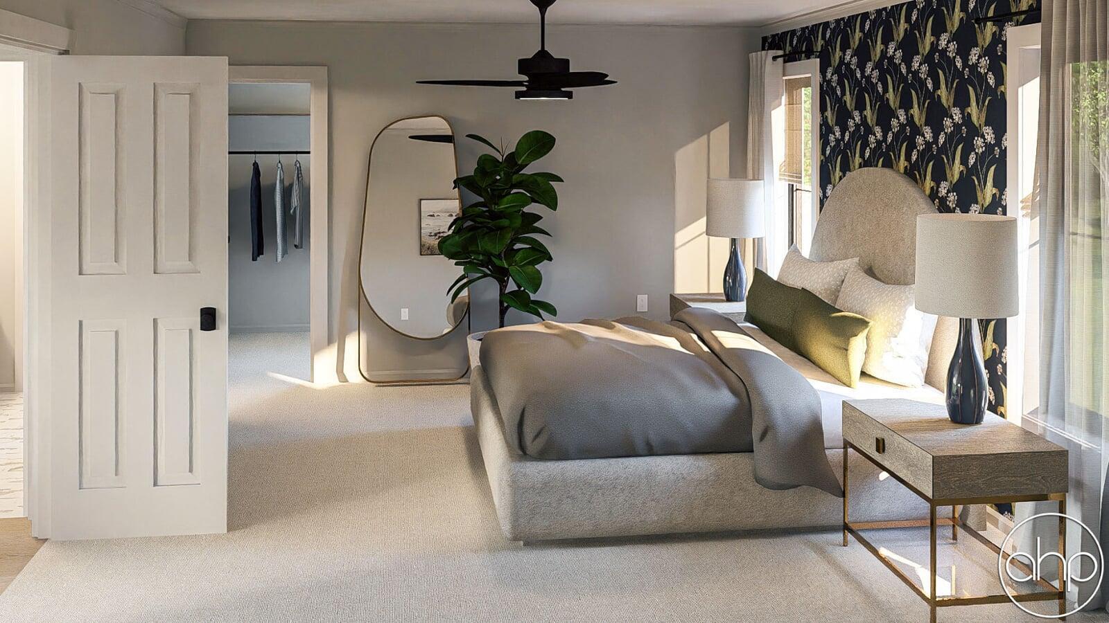 The carriage house features two cozy bedrooms, each offering a tranquil retreat for residents or guests. The master bedroom boasts the luxury of a walk-in closet, providing ample storage space while maintaining a sense of elegance and organization.